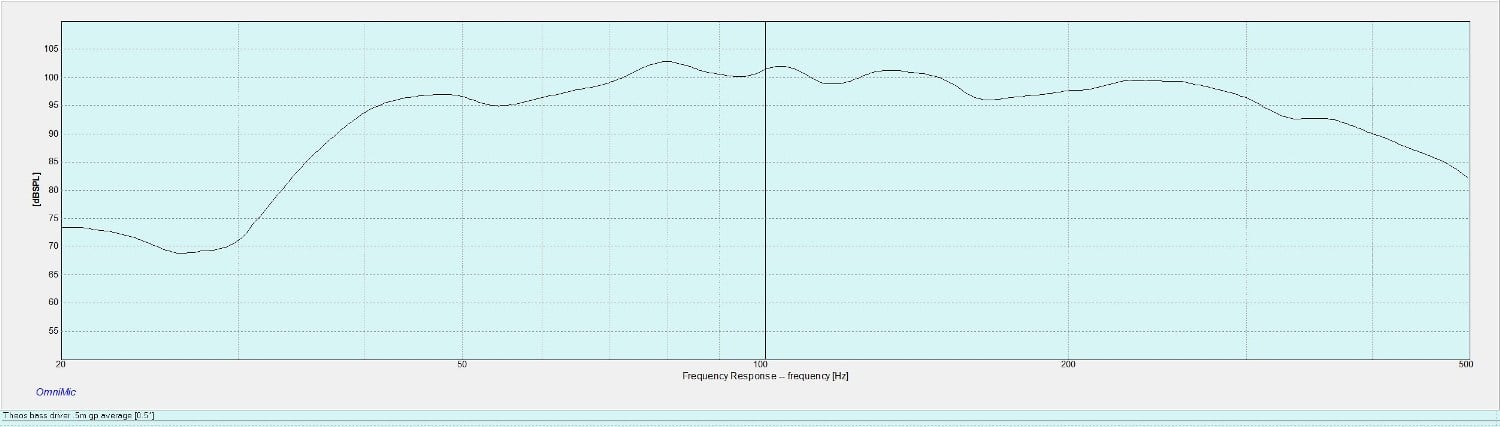 In order to accurately measure the bass response of the Theos I took a .1/2m groundplane measurement with the speaker standing upright (port facing the floor). The results were quite smooth, with a sharp roll off at above 300Hz. This was predictable because the Theos are crossed over at 425Hz and utilize a 2nd order x-over. The Theos played strongly down to 40Hz, right in line with the official 43Hz -3dB point. It is nice to see a company report accurate measurements, far too many companies fudge their measurements for the sake of selling more speakers.