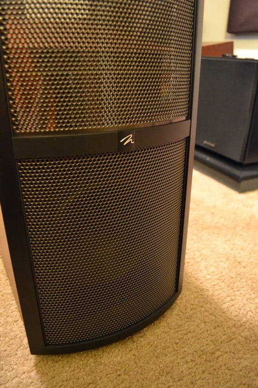 The Theos’ panel is 44” high by 9.2” wide, the same height as their $14,999/pr Summit X. The tall panel allows for a larger listening area vertically, higher output, and a lower crossover frequency. The Theos’ panel plays down to 425Hz, below which a front-firing 8” aluminum driver with cast basket takes over. On the bottom of the cabinet is a tuned port that is flared on both sides. A low crossover of 425Hz means that the entire 44” panel plays all of the high and mids, avoiding a crossover in the critical midrange. Once I got the speakers setup properly I found the panel and 8” driver to blend nicely, something that has been an issue with older models.