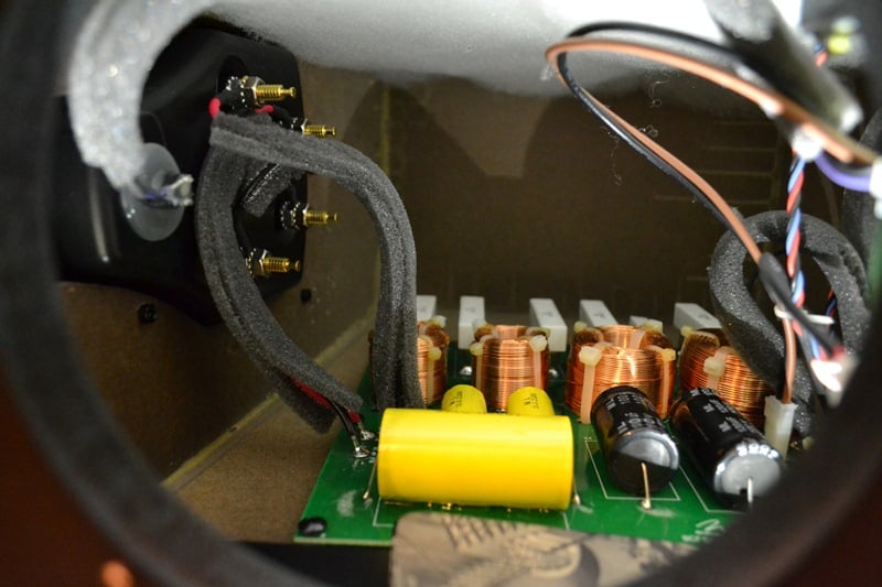 The air core inductors and poly caps for critical circuit paths are high quality and the resistors are mounted on stand offs for better heat dissipation. It’s rare to see this level of detail employed in a loudspeaker crossover but it’s welcomed.
