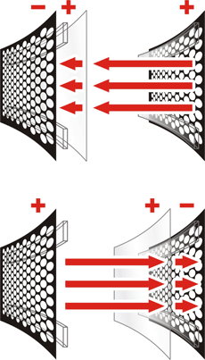 Although it might be easy to just claim that MartinLogan uses black magic to conjure up sound from a 4 foot tall transparent panel, there is a slightly more helpful answer. A thin diaphragm/membrane is stretched tight and sandwiched in between two perforated metal grills, or stators. The diaphragm is only 12 microns thick (that’s 1/8 the thickness of a human hair) and is made of a special material that MartinLogan developed with 3M. The diaphragm is given a constant positive charge while the charge on the stators is reversed thousands of times per second. By changing the charge on the stators from positive to negative and back again, the diaphragm is pushed and pulled back and forth. As the diaphragm moves back and forth thousands of times per second it rarefies and compresses the air (it “creates” sound). This is arguably an over-simplification as there are a number of special components and complex processes that are involved in production. Luckily, MartinLogan has a great YouTube channel that can help fill you in on some of the gaps.