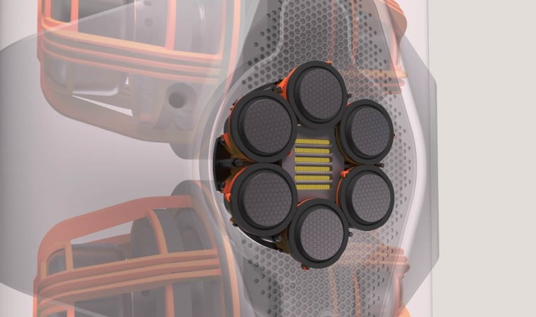 The basic architecture of the three-way Concept 50 reminds me a bit of KEF’s Blade, in that it employs a front-firing point-source handling the mids and highs, along with two pairs of side-mounted, force-cancelling woofers. But while the KEF Blade is built around that company’s proven Uni-Q concentric driver, the heart of Monitor Audio’s Concept 50 is an all-new multi-driver midrange and tweeter assembly called “The Array.” This ultra-compact and undeniably eye-catching unit combines six small midrange drivers nestled tightly around a custom-built AMT tweeter. Together, the six 2-inch midrange drivers have a greater surface area than the 4-inch midrange drivers used in Monitor Audio’s current flagship Platinum Series speakers, but their unique arrangement surrounding the tweeter creates an acoustic point-source system that promises better soundstage depth, height, and width, along with a more clearly-defined center image. The Array is mounted to a machined-aluminum baffle that sits at the front of a 3D-printed enclosure, custom-designed and tuned to optimize the performance of the midrange drivers. These drivers are said to offer wide enough bandwidth that they could extend high up into the range of a typical tweeter. This reportedly keeps distortion low and ensures the smoothest possible crossover to the tweeter. According to Michael Hedges, the midrange drivers show no signs of breakup until above 10kHz, and extend up to 23kHz. At the bottom of their range, they go down to 150Hz with 2-3 mm of excursion. Why not go with a traditional dual concentric midrange/tweeter assembly, like the ones used by KEF and TAD, for example? Hedges says that the displacement of the mid-range diaphragm, which forms the tweeter’s waveguide in such designs, can add intermodulation distortion to the tweeter. This effect can be mitigated (though not completely eliminated) by limiting the low-frequency output of the midrange driver. The Concept 50’s tweeter waveguide is fixed in place, and the surrounding midrange drivers create a flat baffle around the tweeter. Therefore, there's no additional intermodulation distortion on the tweeter, and the midrange drivers are free to deliver the best possible performance at the low end of their operating band.