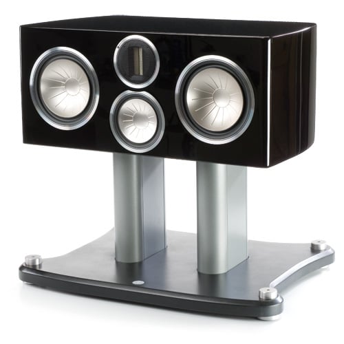3 way Center, with C-CAM ribbon tweeter, 4˝ RST mid-range driver, 2 x 6½˝RST bass drivers in a sealed enclosure. Video shielded. Magnetic metal-mesh grille attachment, die-cast alloy bi-wire cable terminal panels. |