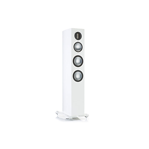 The first of new Gold’s floor-standers is also the most compact. This three-way design speaker comprises an improved pair matched ribbon, twin 5.5” bass drivers and a 4” midrange driver, which is housed in a dedicated enclosure. We’ll see if Monitor Audio’s claim of high overall efficiency, wide bandwidth and vanishingly low distortion is true in a full review of these floor standing speakers.