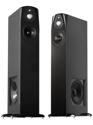 - Smooth, nearly full-range sound from a mid-sized floor-stander