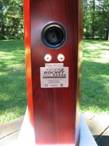 The Rocket RS450s came double boxed, capped by foam with two additional foam collars around the body of the speaker, and covered in a cotton sock. White cotton gloves are provided to assist you in removing the speakers without getting a ton of fingerprints all over the glossy finish. The Rocket RS450s are presented with the standard Rosewood finish with black piano gloss top and bottom caps. The finish on these speakers is frankly gorgeous. It is actually a shame to put these speakers in a dark room. I took many of my photographs outside and the finish really popped (as did the white foam endcap). Back inside, they lost a lot of that luster.