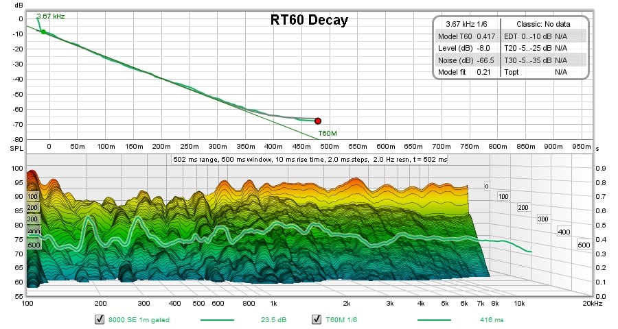 RT60 Decay Time of Audioholics Smarthome Guest Room ( < 500 msec from 100Hz to 20kHz)
