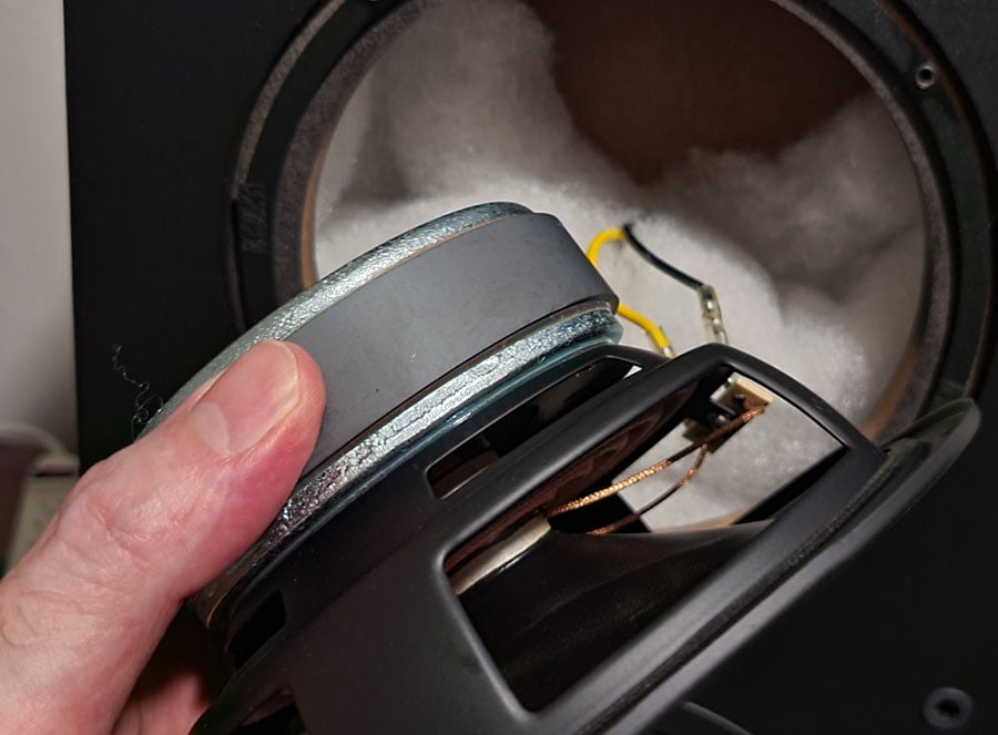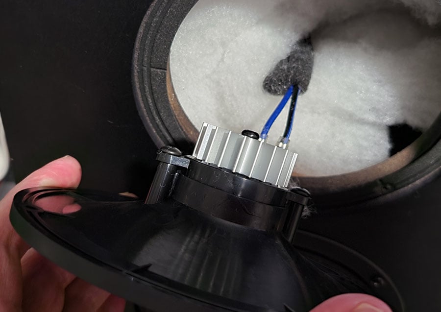 Paradigm SE 8000F Tweeter w heatsink (left) ; Midrange w vented spider (right)
