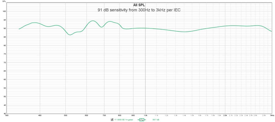 Paradigm SE 8000F Sensitivity Measurement (2.83Vrms @ 1m from 300Hz to 3kHz, gated)