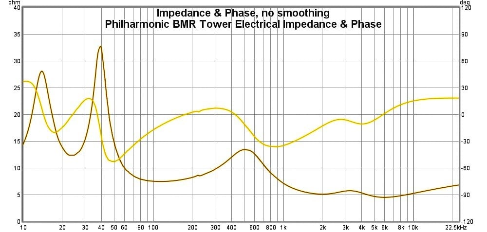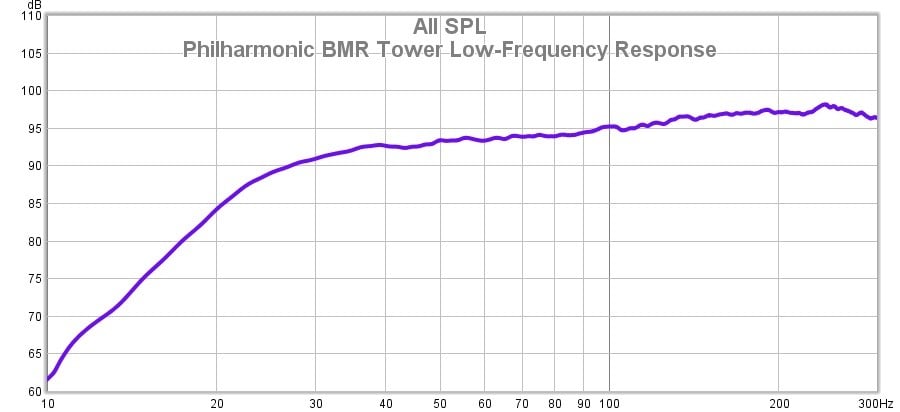 I measured the BMR Tower’s sensitivity at 85.4dB for 1 meter at 2.83v which is very close to Philharmonic’s specification of 86dB. This is a bit lower than most tower speakers of its size, but then it digs quite a bit deeper than tower speakers of its size, so that is an expected trade-off. If you want these to get loud, you will need to supply them with some power, and I would be aiming for at least 100 watts per channel if not more.