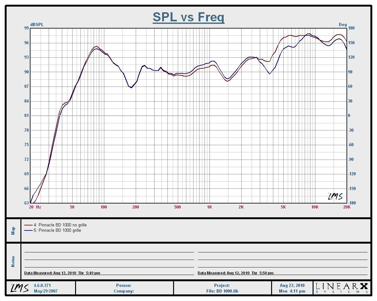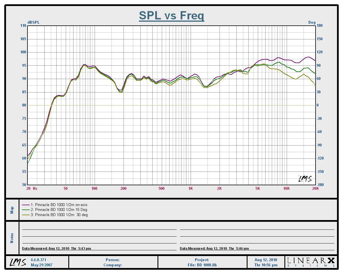 1/2 meter SPL vs Frequency Pinnacle BD 1000 (1/3rd octave smoothed)