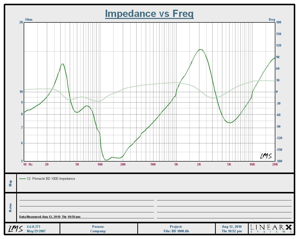 Impedance / Phase Measurements of the Pinnacle BD 1000
