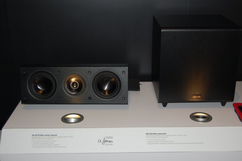 The Pioneer Elite SP-EC73 center speaker and SW-E10 subwoofer round out the package.