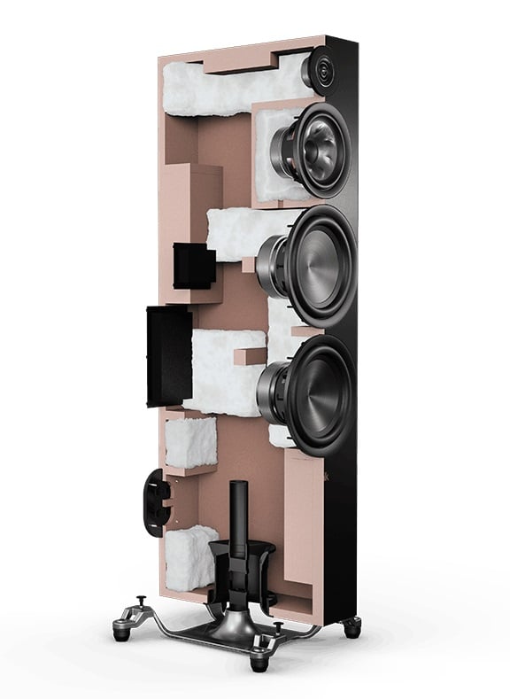 The port on the R700 is quite interesting and shows some thought was put into pushing standard port design forward. Polk has always had their ‘Power Port’ technology which places a prong mounted on a base into the port opening that is supposed to reduce port turbulence by controlling the travel of air at the port’s exit. For the Reserve R700, Polk has evolved this technology into ‘Power Port 2.0.’ In this iteration, instead of a prong at the port’s exit, there is a tube that goes up into the port and is shaped into a set of closed-pipe absorbers that act as Eigentone Filters (an eigentone is an acoustic resonance caused by parallel boundaries). These filters are strategically located to reduce unwanted port resonance. Resonances above the port tuning frequency are usually unintended and can be high enough in level to affect the frequency response. Polk claims that the Eigentone Filters can reduce these higher resonances by as much as 14dB, which is a major reduction in audibility.