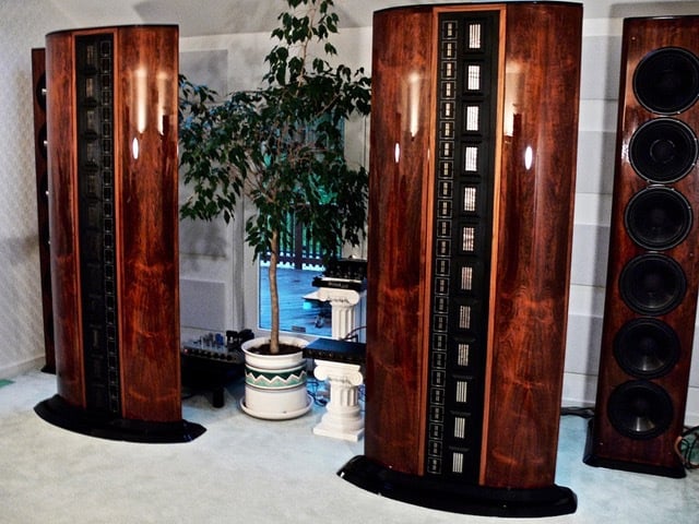 bass is handled by four 8-inch, cast-frame, aluminum-cone woofers per speaker.
