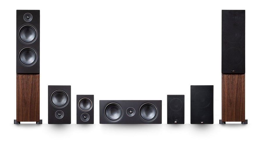 The T20 tower adds an additional woofer in a larger floorstanding cabinet yet occupies a small footprint.