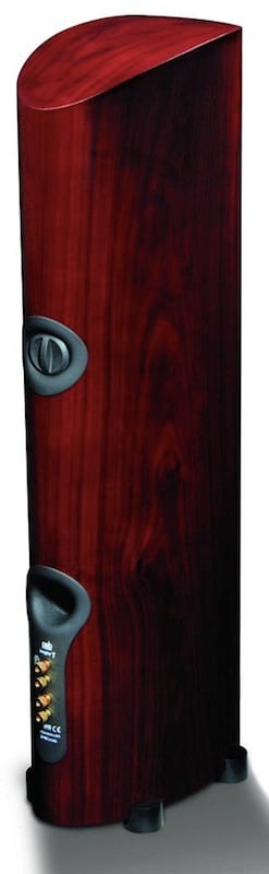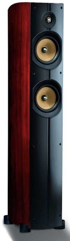 The PSB Imagine T towers are fairly diminutive as towers go. They weigh in at a slight 40.6 pounds and are just over 37" high, 13.5" deep, and 8.25" wide. The light weight means you won't have trouble moving them around. They are equipped with outriggers with either rubber nubs (for tile/wood floors) or spikes (for carpet) so their narrow width doesn't make them unstable. As many speakers are these days the Imagine T's have a rounded cabinet that is narrower in the back than the front. This is to combat standing waves in the cabinet. PSB achieves this design by using up to seven layers of laminated 3mm-thick MDF. The front baffle is reinforced to 1.5" thick. The real wood veneer is available in Black Ash or Dark Cherry (shown).