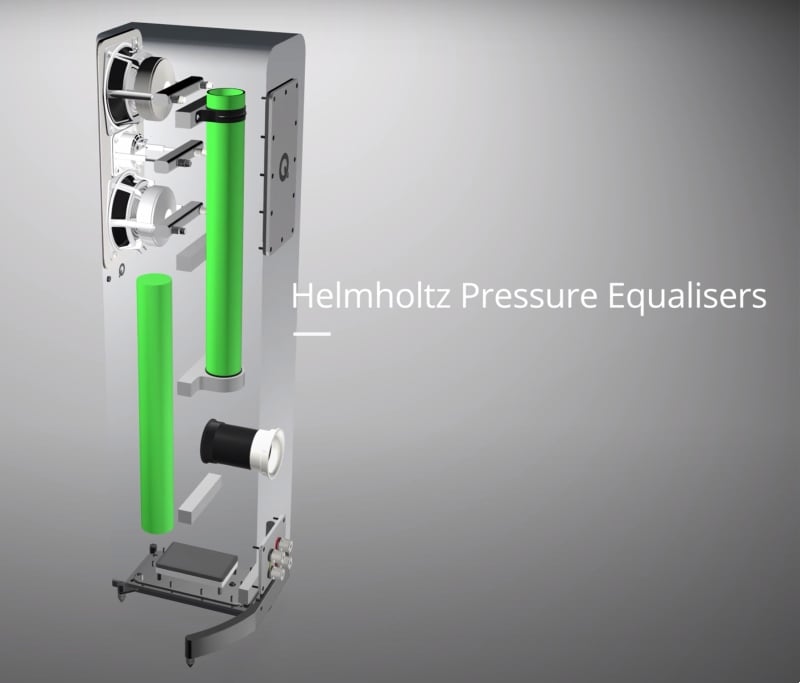 The cabinets of all three new Concept speakers further benefit from Q Acoustics’ P2P (Point to Point) technology, which sees internal bracing applied to reinforce certain areas of the cabinet where low-frequency reverberations are most likely to wreak havoc. Using Finite Element Analysis and laser interferometry, the engineering team examined the response of the cabinet “down to a microscopic level,” in order to identify the locations most susceptible to problematic vibrational behavior. The team then applied bracing to the precise points on the cabinet that needed additional reinforcement. This laser-focused support placement not only leads to a more rigid cabinet overall, it also helps the cabinet dissipate unwanted energy as heat rather than transfer it to other parts of the enclosure. For the Concept 30 stand-mount speaker and the Concept 90 center-channel speaker, the above technologies are all that’s required to deliver the kind of performance that Q Acoustics was aiming for in terms of cabinet quietness. But the Concept 50 floor-stander has some unique challenges owing to its tall and slender design. Q Acoustics says that tall floorstanding speakers have a natural tendency to cause internal pressure to build up inside their cabinets, leading to troublesome standing waves and reverberations. In order to prevent this pesky pressure from accumulating in its flagship Concept 500 floorstander, the company developed something called Helmholtz Pressure Equalizer technology, which has now trickled down to the new Concept 50. Inside the cabinet, pressure is “converted to velocity” using specially-designed Helmholtz Pressure Equalizer (HPE) tubes, which reportedly eliminate standing waves and reverberations that would otherwise alter the frequency response and thus affect performance.