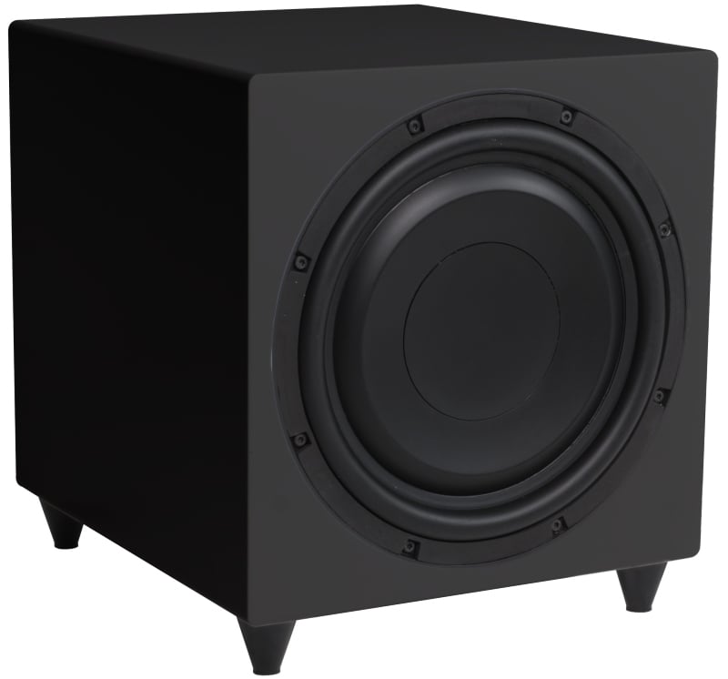 midrange driver, and a side-firing 8-inch woofer. The cabinet is tuned to 32Hz,