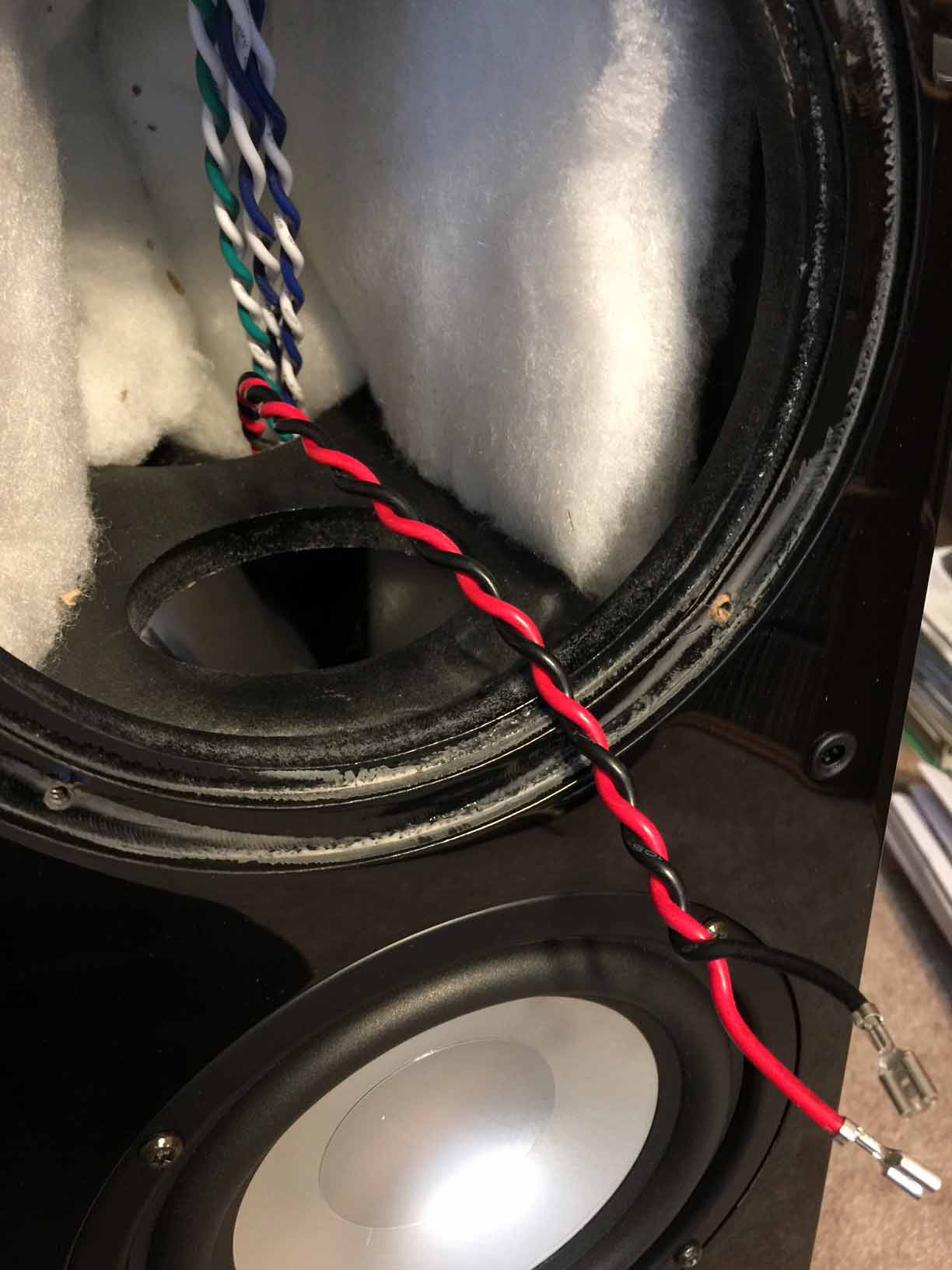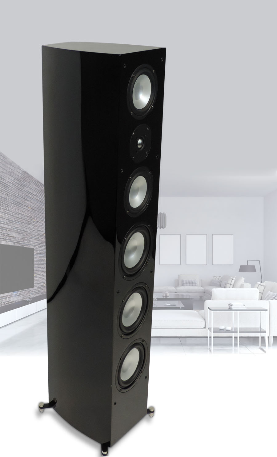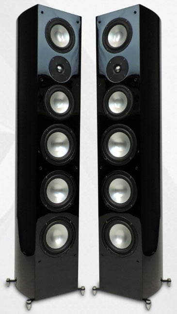 My cabinets were finished in gloss black paint. The finish was beautiful—smooth, lustrous and expensive-looking, with no “orange-peeling” imperfections to mar the surface. Very nicely-done and quite impressive. The speakers themselves didn’t weigh as much as I thought they would considering their size—they’re 55 lbs., which is a little on the lightweight side for a 4-foot-tall tower with five drivers using large, heavy ceramic (not neodymium) magnets. The cabinet itself has a ¾-inch MDF front baffle (and I presume ¾-inch side and rear panels as well), plus two nice internal windowpane braces in the woofer section, between woofers 1 & 2 and 2 & 3. The braces themselves were ½-in MDF. The MF-HF MTM section was enclosed in a sub-enclosure of MDF, which also serves to brace the top portion of the cabinet. There was a generous amount of internal damping material to suppress internal cabinet resonances.