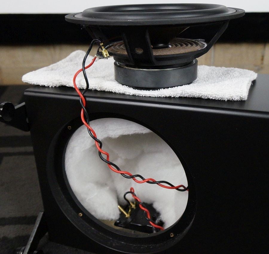 The enclosure is made from high-density fiberboard (again, unsual at this price) instead of medium-density fiberboard, so it is a bit tougher than the norm. It uses 1/2” thick panels, and there is a window-pane brace about ⅔ of the way up the cabinet. Porting is done through a rear-mounted slot port. The slot port construction, tweeter/midrange compartment interior panels, and window pane brace help to make the enclosure quite inert. There is a generous amount of acoustic stuffing to help damp internal waves as well. This is a well put together speaker for its class of product!