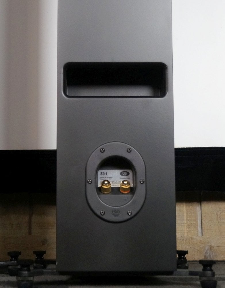 The 85-i uses a single pair of 5-way binding posts set in a terminal cup. Thankfully, RBH Sound has avoided the audiophile nonsense of using dual binding posts for a modest home audio speaker. The feet are some rubber domes that are mounted on aluminum outriggers. As was said before, the grilles use magnetic adhesion, and it does provide a good hold; some other speakers that had magnetic grilles had pretty weak force to hold the grilles on, and they could be knocked off easily. Thankfully, this is NOT the case with the RBHs.