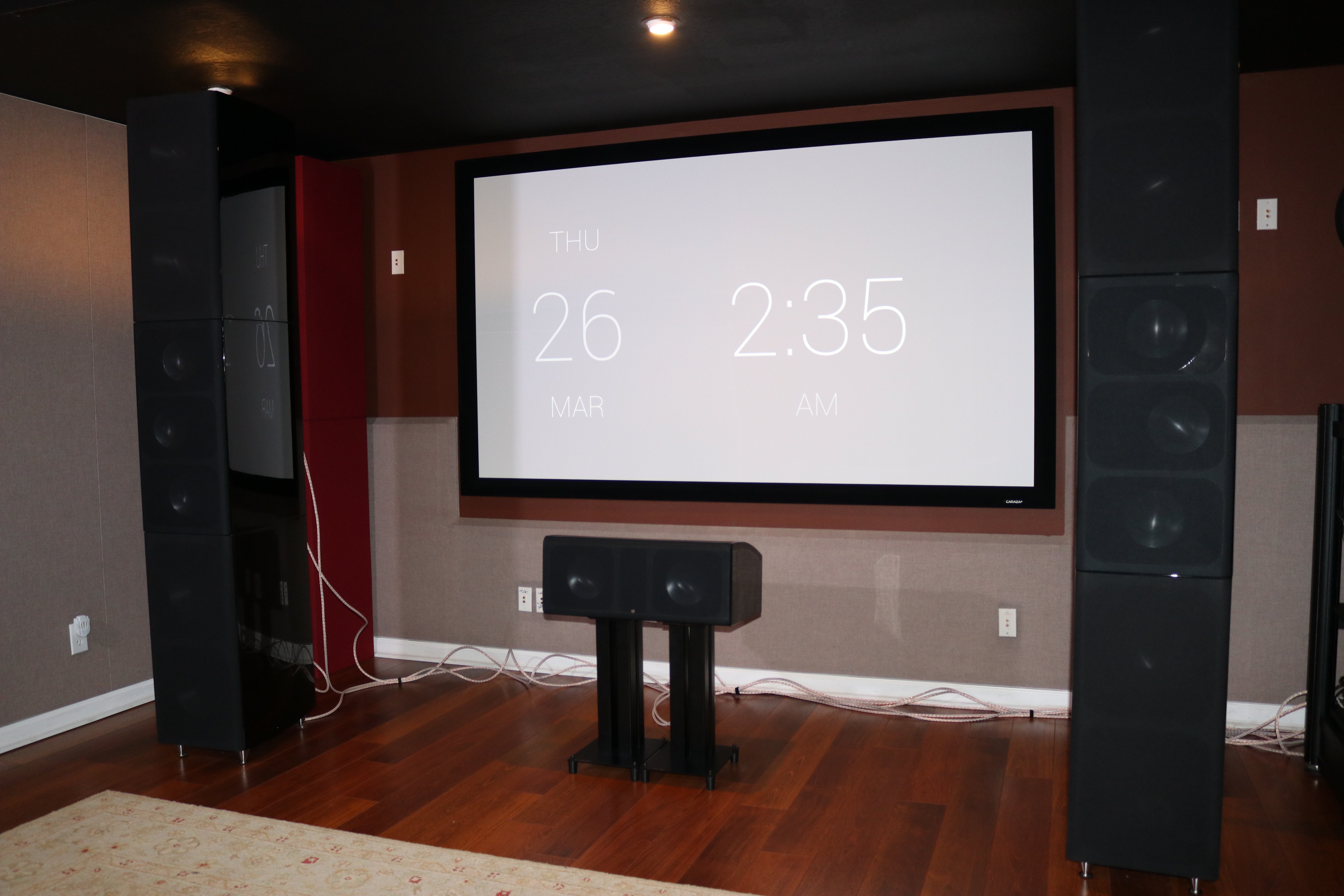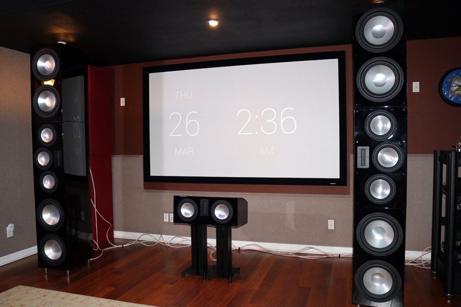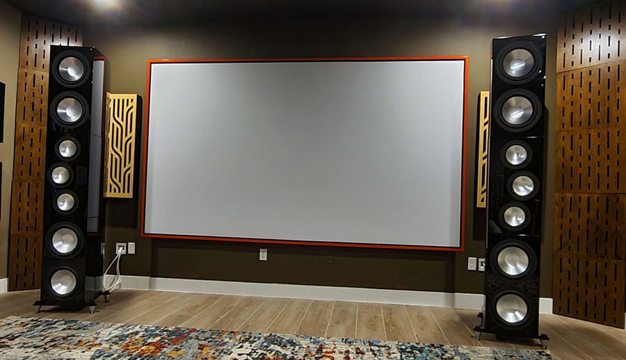 The RBH SI-831R matching center channel is behind the Screen Innovation Acoustically Transparent Screen