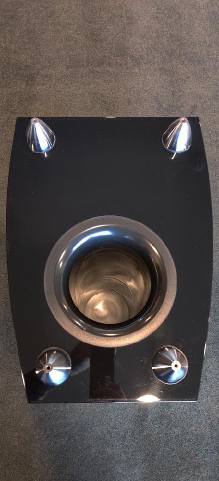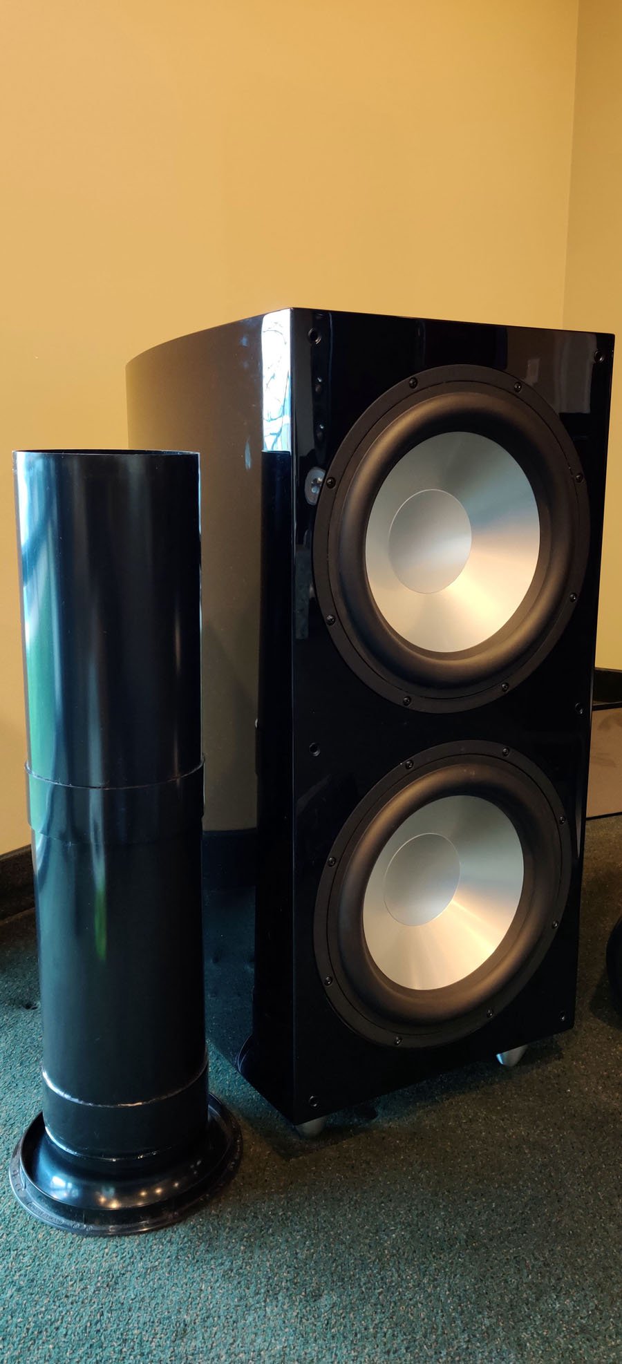 We've covered the wonderful RBH aluminum cone drivers ad nauseam in prior reviews. Suffice it to say, imagine the incredible 10" bass driver from the Status 8T and make it 12". Now multiply that by 4 for each speaker. That's right, each SVTRS houses dual SV-1212 subwoofers for a total of eight 12" bass drivers to round out the bass of the system. One SV-1212 subwoofer easily exceeds our Extreme Bassaholic room size rating. Having four of these subs increases they system output +12dB while also helping to control vertical room modes by loading into the room in two locations (floor and ceiling) per speaker. These subs have the largest ports I've ever seen. The port diameter is a whopping 6 inches and the combined port volume for the system is 50 liters! What does this mean? Lots of low frequency output without chuffing or compression.