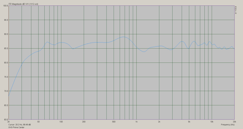 Sensitivity of the Prime Towers sits just around 87dB/2.83v at 1 meter which is exactly how SVS rated them. on-axis frequency response at 1 meter from the speaker shows roughly a +/-3db variation and exceptional extension all the way down to around 30Hz - which given the enclosure-size, driver-size, sensitivity, and price-point is quite an accomplishment. Overall the response appears linear, but with a slight peaking in the treble from 4kHz to 8kHz which may partly explain the occasional mild sibilance that I heard with certain program material.