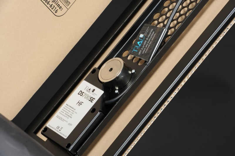 Like the other panels in the line, the DS700se has a powder-coated aluminum frame, an extremely rigid aluminum honeycomb core with paper skin covering (this is the part that vibrates to make the noise), and electro-mechanical drive devices. The panels each come without a back-box but Triad offers one for an additional charge. the DS700se is designed to fit between the studs in standard installations (meaning you didn't add on to your house with your handyman friend). The impressive thing is that the DS700se are less than two-inches thick which will allow installation in even the most challenging rooms. The high frequency panel is 17-23/32 by 13-37/64 by 1-37/64 inches and the low frequency one is 17-23/32 by 7-7/8 by 1-37/64 inches.