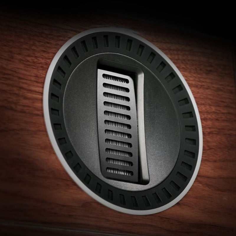 The Elysian range, alongside the more budget-friendly EVO4, represents a departure for Wharfedale’s approach to high-frequency information. After many decades of sticking with dome tweeters, Wharfedale has designed a 27x90mm AMT tweeter for the Elysian range (the EVO4 uses a similar but less costly unit). AMT tweeters have been used by a handful of manufacturers for years — Legacy Audio and Elac come to mind — but have been increasingly popular for the last decade or so, and can now be found in great-sounding products from RBH Sound, Monitor Audio, GoldenEar Technology, and many other well-respected brands. If you aren’t familiar with the technology behind AMT drivers, this is how Wharfedale explains it: