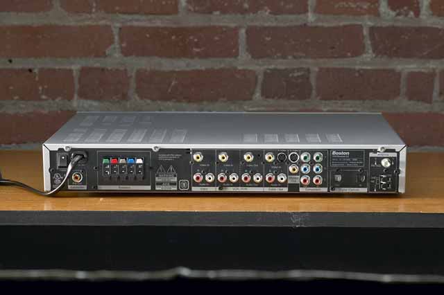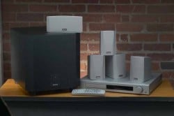 DVD/CD Player and Receiver, four Silver Micro110x Satellite Speakers, a Silver Micro110c Center Channel, a PV700 Powered Subwoofer, and an easy-to-use Universal Remote Control. The Player/Receiver is compatible with today's most popular disc and surround sound formats, including DVD, CD, Video CD, MP3, WMA, CD-R, CD-RW, JPEG images and Picture CDs.The Player/Receiver also features progressive scan (480p) component video output from the internal DVD drive; compatibility with Dolby Digital, DTS and Dolby Pro Logic II audio sources; and a high-performance AM/FM Tuner with 40 presets. In addition, the system features Boston Acoustics' "proprietary" UniView component video up-conversion.