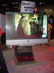 DLP showed off its new xHD3 engine which features a 1920x1080p resolution and enhanced "DynamicBlack" (DarkChip2) technology which provides enhanced contrast ratios, grayscale range and a better overall picture. The unit was a Samsung model that is not yet priced or available for reslae. The picture looked absolutely crystal clear and will definitely give LCoS a run for its money - isn't competition wonderful!
