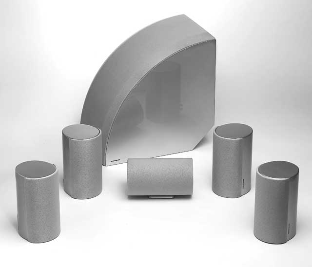Marantz Americashowed off a new concept in all-in-one home theater designs: the ER2500 Home Theater system. Featuring an elegant new "lifestyle" design, the sleek ER2500 system offers everything needed to enjoy surround-sound audio and video, including five satellite speakers and a subwoofer, a 6.1-channel audio/video receiver with a built in AM/FM receiver and a high-performance progressive scan DVD player.
