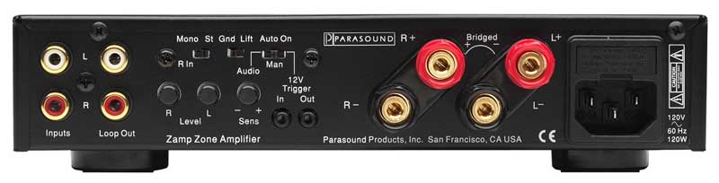 The Zamp v.3 features gold-plated five-way binding posts for speaker connections, and line-level inputs and outputs for integration with other equipment. Rear panel level controls can be independently adjusted for each channel to ensure ideal gain staging with a variety of preamplifiers or multi-room controllers. The front panels EIA rack mounting holes. An optional Zblank adaptor can be used to mount a single Zamp v.3 in a 19-inch rack, while the SBS side-by-side adaptor allows any two Parasound Z models to fit in one rack space. Each model also includes no-mar isolation feet for standalone use.