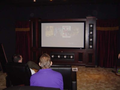 And the sound? Incredible. The system we demoed was the equivalent of the T-system but in an in-wall configuration, comprised of three SI-6100s (left, right and center), two SI-760s for surrounds, and two 1010-SE subwoofers. The CinemaSITE simply blew us away in terms of its quality, dynamics and imaging. And on top of that, it truly gives you the look of a custom home theater without all of the hassle and it is designed to be retro-fitted into an existing room. Normally, a home theater system that looks like this would have to be built in from the ground up, pre-construction. The CinemaSITE, however has several features and uses several technologies that allow for installation into finished rooms (special cabling methods and tools allowing for flexible cable management under crown moulding, etc.).