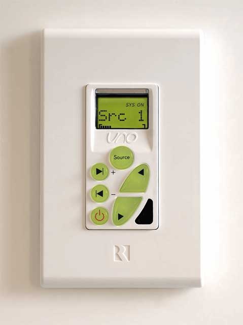 The CAM6.6T will be offered in a package with (6) UNO-S1 keypads while CAM6.6X will be combined with (5) UNO-S1 keypads and (1) UNO-S2 keypad. Complementing the CAM6.6T is Russounds debut of the new UNO-S1 smart keypad with an MAP of $229. The UNO-S1 features a custom five character LCD display that provides the user with important feedback such as source name, radio frequency and preset name. When combined with Russound smart sources such as the CAM6.6 built-in tuner, ST2-XM Dual Tuner or SMS3 Media Server, the user can view useful information such as station id, artist, track and song title right from the UNO keypad display. The compact single gang keypad is housed in a stylish Decora design that is available in five popular colors to blend in with virtually any decor. The CAM6.6 also features a built-in IR control code library as well as IR learning capability so the system is compatible with virtually all brands of a/v equipment.