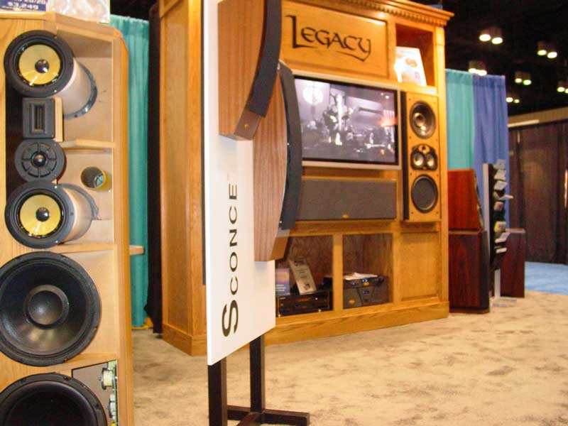 Legacy Speakers had a very attractive display. We were most impressed with their cross-section speaker which allowed us an opportunity to see the insides of the cabinet in order to examine the baffeling, chambers and materials. The crafsmanship of these speakers was extremely impressive espcially their Focus 20/20 which retails at $6,400 per pair.