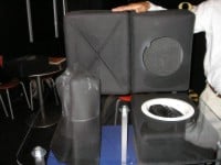 This is basically a back box for in-ceiling and in-wall speakers to reduce noise between floors, sound migration between walls, stop back wave distortion and improve the sound quality. The really cool thing is that you basically fold the box up, place it through the cutout hole and then allow it to re-expand to create the box. This is perfect for new or retrofit construction. During my brief demo I can truly say the A/B demonstration with and without the back boxes installed was amazing. Midrange clarity was dramatically improved with the boxes installed.