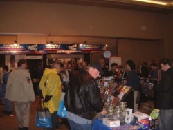 Die-hard vinyl and "Oh well, if you insist. Here's the CD version" fans gather at the Acoustic Sounds, Music Direct and Elusive Discs displays at the Alexis Park. Tweak nirvana . High quality LP pressings of famous artists and limited edition, well recorded CDs mostly of artists who may never become household names were available here. AIX Records , whose Mark Waldrep is engineering some of the finest surround DVD-Video and DVD-Audio dics available today were also there. I'm such a fan of Mark's recordings I've asked him if I can attend one of his recording sessions. Looks like that may happen later this month.