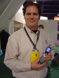 We delivered our Product of the Year Award to Bryan McLeod, Vice President of Logitech's Remote Control Business for the Harmony 676 remote control . While we were there we previewed Logitech's new universal remote control with a large LCD color display. The new logitech Harmony 880 advanced remote control offers enhanced navigation through the use of customizable graphical icons (which replace the former activity buttons, allowing for multiple screens of 8 activities each. Slated for availability in April, the new remote is the first to leverage Logitech's renowned design expertise to make the Harmony remote even more stylish and intuitive, so home-entertainment can be fun and relaxing. Mark Rigley, Senior Developer for Logitech's Harmony line was extremely pleased at the look and feel logitech was able to impart to the new remote. He commented that logitech is taking the remotes to a new level in terms of industrial design and ergonomics. From first glance, we'd have to agree. Mark is pictured to the right holding one of 5 prototypes of the remote.