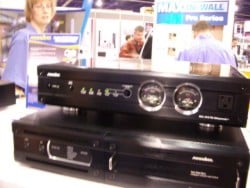Panamax also debuted its high performance UPS designed for home theater applications. With a 1500VA rating, learning IR output control critical load management, RS-232 programmability and noise filtration, Panamax is positioning their new MAX 1500-UPS as an ideal solution for managing home theater power. While its conditioning features are not as robust as the Panamax 5510-PRO Power Conditioner, its price point makes it a viable alternate option for those seeking a high end and sophisticated power conditioning unit as well as a backup UPS unit to provide continuous safe voltage to your theater equipment. Panamax' colorful booth had both units on display, marking their public debut. A quick glance at the front of the unit showed off an Unsafe Voltage Indicator, a Line Fault indicator, as well as load level, AVR, backup battery, and battery level indicators. The rear of the device featured both non critical and critical load outlets as well as the aforementioned RS-232 serial port and IR control section. The unit will ship this January 17th and has an MSRP of $999.