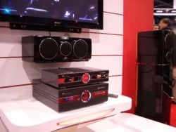 Marketed for the "audiophile", Denmark's Vifa took some time out today to show us their new reference series speakers. Before they are even turned on, the first thing you notice is how sleek they look. With a piano finish and no delusions of being small and discrete, these are meant to be seen and heard. Vifa demonstrated the speakers with their new Reference component line as well, consisting of the VR8X receiver and VR8D DVD player. These two items are not packaged with the speakers, but are the visual equal and are intended to complement one another. The receiver has a 24-bit DSP chip that decodes all the popular formats such as Dolby ES and DTS EX 6.1. It also features analog bass management for two-channel "Direct" mode (kudos). Vifa was demoing the system, but of course the CES show floor isn't the greatest place for a subjective review. The main speakers feature a 150 watt powered 10" sub in their base. The cabinet design separates the subwoofer, reducing the transfer of vibration to the midrange and high frequency speakers located above it. Vifa also mentioned that they were careful to match the voicing for all speakers in the reference system, ensuring similar reproduction from all channels.
