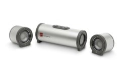 The Virgin Boomtube EX features 2" aluminum speakers that reproduce sound at the mid- and high ranges. In addition, Boomtube EX combines two bass drivers with MaxBass technology for lower frequency bass reproduction. With lithium rechargeable battery and a carrying case for portability, the whole system weighs just over three pounds.