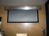 The Supernova Flex retracts into a wall mounted enclosure when not in use. When the screen drops down it appears as a picture frame without the usual ´black drop´ common to other screens. The screen is suspended by a pair of 1/48-inch cables, which are virtually invisible. Even when in use the Supernova tends to be unobtrusive and blend into its environment.