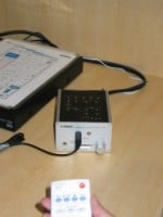 Yamaha had a prototype headphone solution that we found extremely interesting. The Yamaha YSV-1 is a headphone system that attempts to recreate the sound of your home theater through a set of headphones. The way it works is you place a set of ear-buds in your ears that are essentially microphones. The YSV-1 then sends test tones through your home theater system and takes measurements. You hook your headphones into the YSV-1 and you can have a full surround experience. The neat part was that there was an IR transmitter on the top of the headset and a reciever placed on the wall at the front of the theater. When you turned you head, the sound would stay anchored in place (up to 15 degrees in each direction). Overall, it was a very interesting if a bit gimicky demonstration. We can think of a number of interesting applications of this technology and we look forward to seeing how Yamaha handles it.