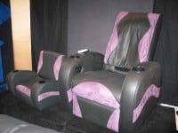 4seating.com had a child's seat on display that was just too cute to pass up. All the normal seating you'd expect for your home theater is available from the company including a variety of styles, leathers, and options such as power recline and integrated buttkickers. What was unique was the option to have a seat made for your child in the same style as the adult seating. Also provided by the company were acoustical "treatments" that consisted of ¼" acoustical foam on a plastic backing board. While the actual treatment value is probably useless for practical applications, the aesthetics seemed to be the focus, helping the customer create that "theater in a home" feeling. Seating starts around a very moderate $1300 for 3 leather seats with manual recline. Custom orders starts at around $700 per seat. Children seating prices were not readily available.