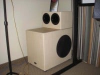 HSU demonstrated two of these placed in the corners of the room playing 2-channel classical music that had content well below 20Hz. The two big subwoofers sounded spectacular as they shook the entire suite with ultra low subsonic sound. We were able to hear the subwoofers shaking the room all the way out on the sidewalk! The large subwoofers appear to have excellent build quality.