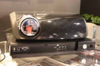 Optoma has a very nice booth at CES this year. They were displaying their new HD-81 1080p DLP projector on a huge 132" white screen. The images we viewed looked absolutely stunning. The new projector is a two piece unit with an external video processor which can be remotely located in an equipment rack or placed near the projector. The projector boasts a 6000:1 contrast ratio, 1400 ANSI lumens and a seven segment color wheel.