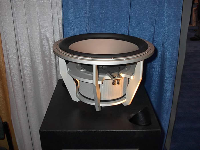 Technology (CAT). They have moved into the realm of designing their own drivers to out-perform some of the highest end drivers on the market. The woofer shown (right) probably weighed a good fifty pounds.