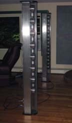 Many line sources horizontally offset their various drivers, but AGA alternates tweeter cylinders with mid-range spheres - one atop the other - in perfect vertical alignment. Because of this, they claim that the phase and dispersion problems caused by driver offset are entirely eliminated.